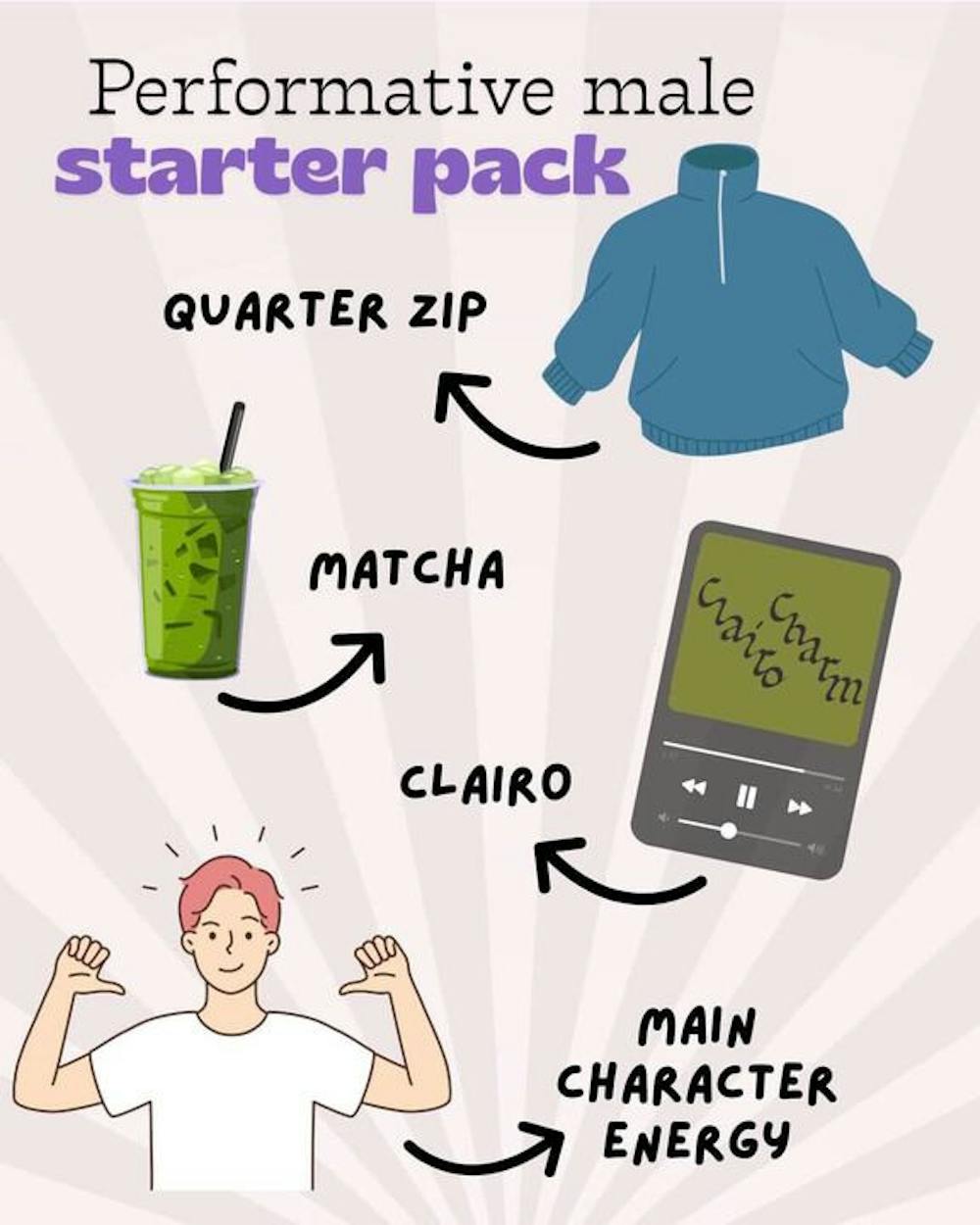 “This could definitely play on [the performative male] trend that has been going on for the past few months, and the quarter zip as opposed to drinking matcha or listening to Clairo or wearing tote bags is a little bit more realistic,” Pierre said. “This one fits [the performative male] pretty well—it’s a good one.”