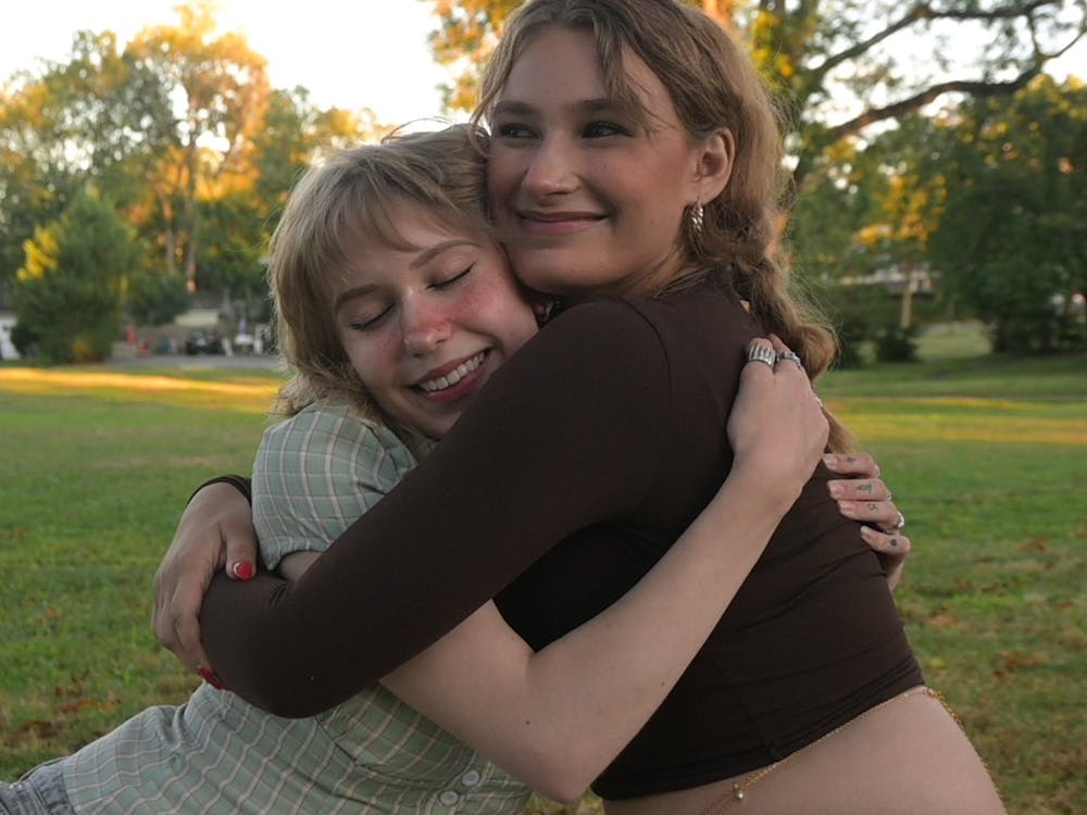 Two friends embrace in Grove Park, South Orange. | Photo by Lianna Cruz | The Setonian