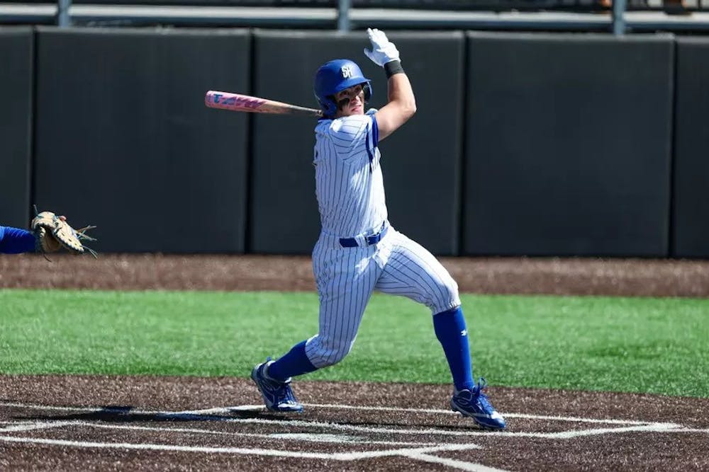 Junior infielder Gabe Cavazzoni at bat this past week | Photo via SHU Athletics | The Setonian